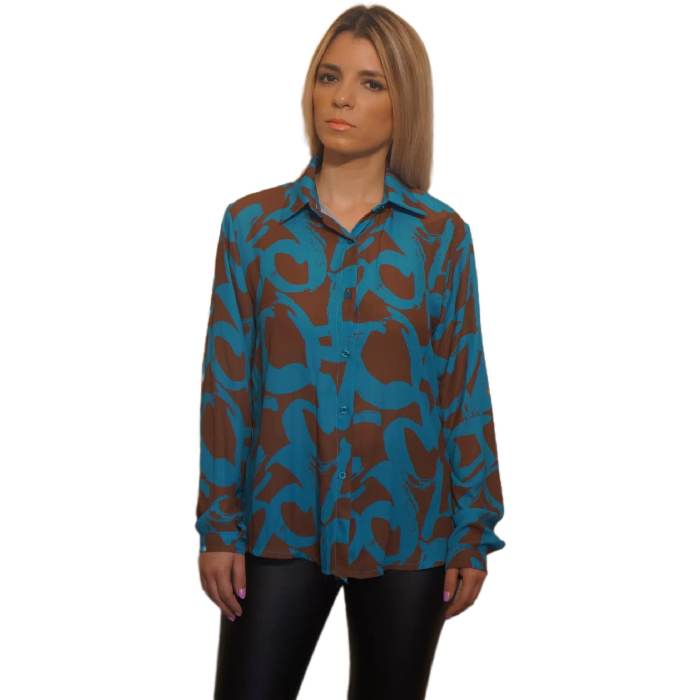 Πουκαμίσα πετρόλ-καφέ με κουμπιά