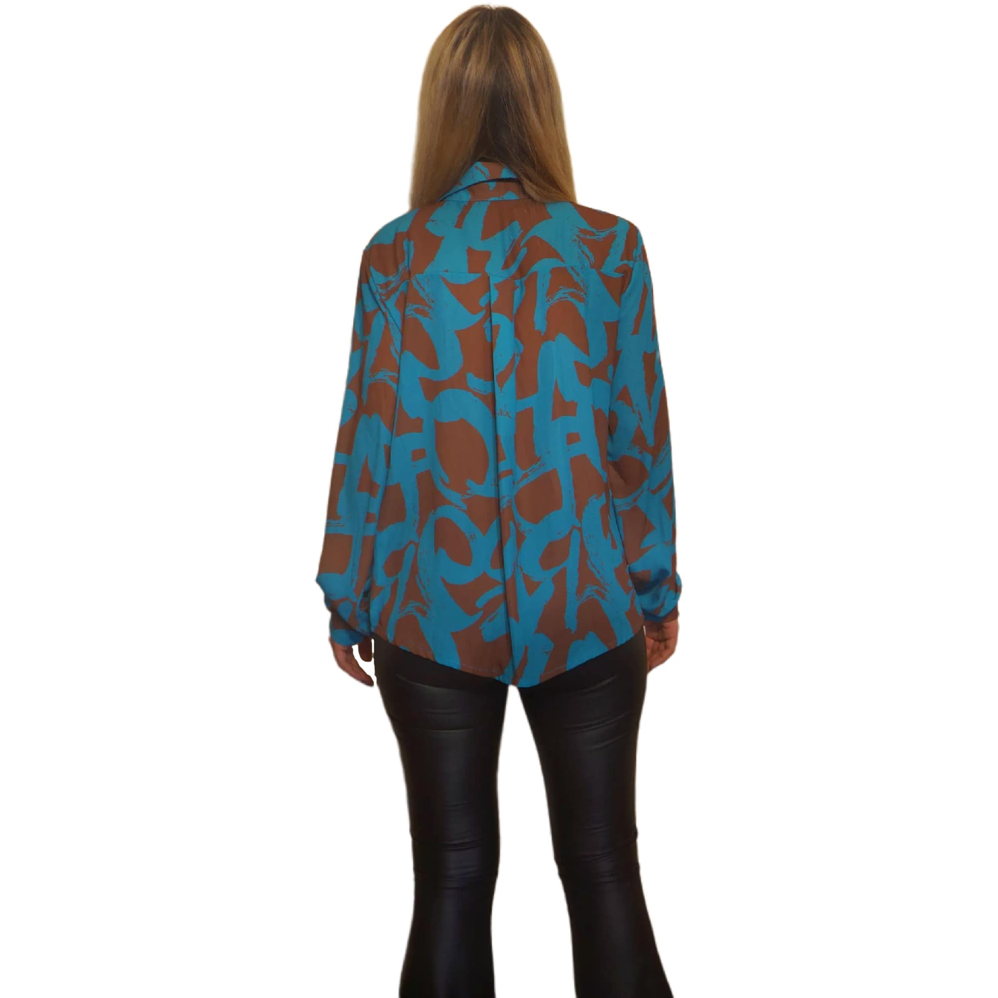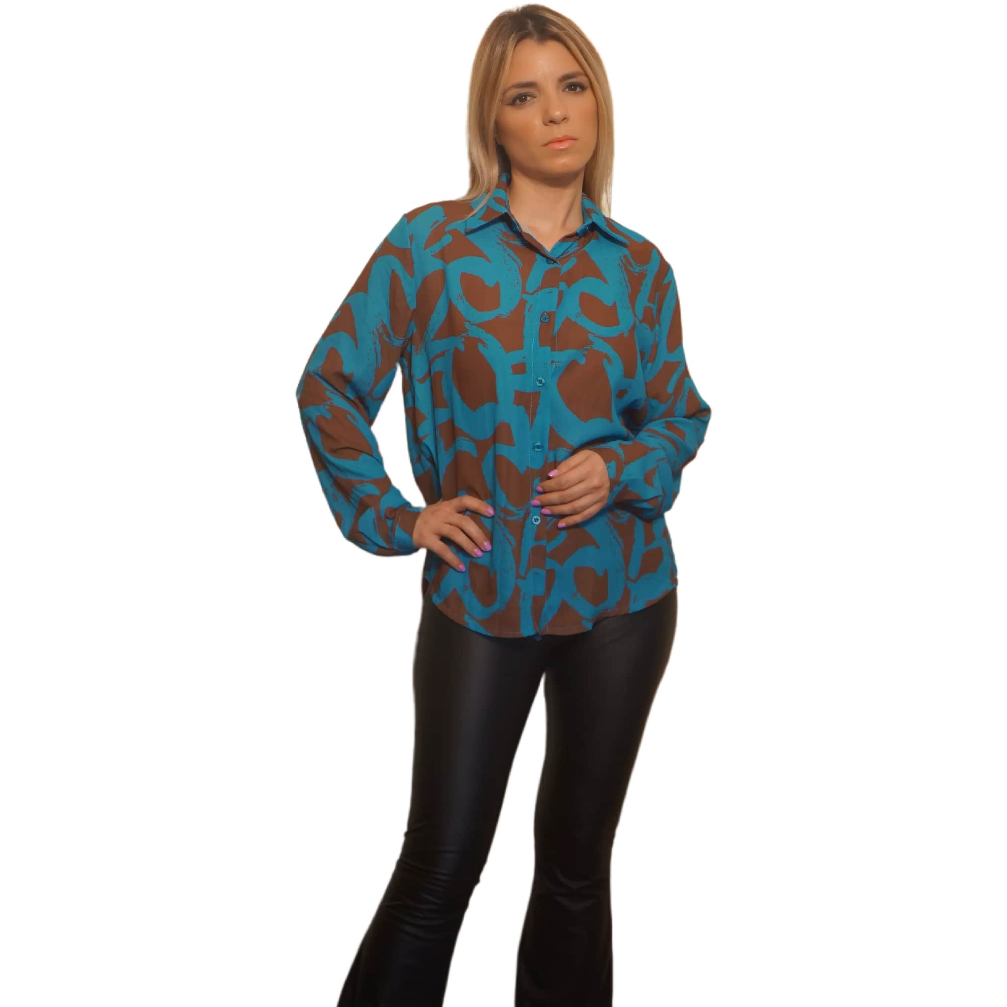 Πουκαμίσα πετρόλ-καφέ με κουμπιά