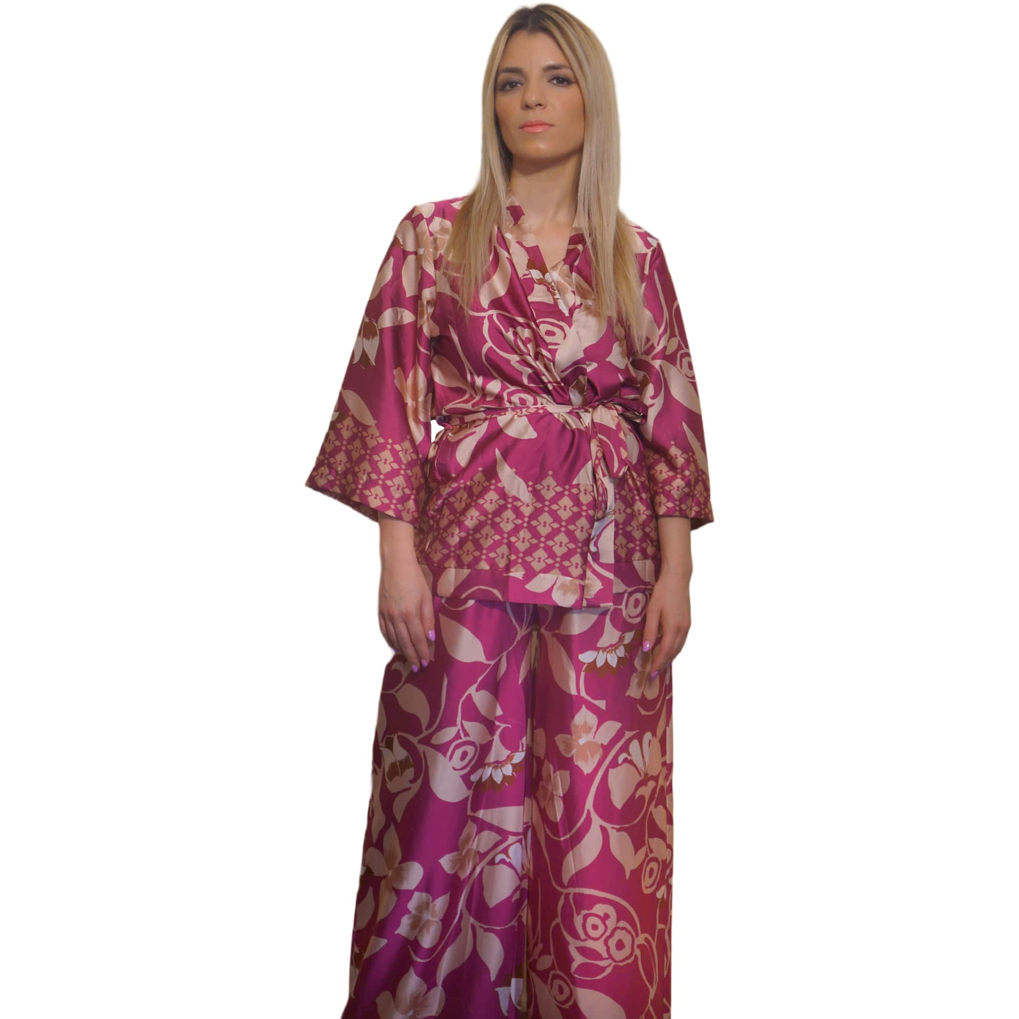 Home Σέτ Σέτ παντελόνα-πουκαμίσα με δέσιμο χρώμα magenta